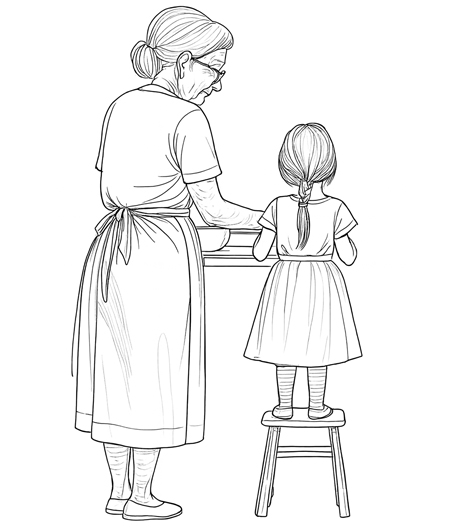 En cuisine, j’étais, depuis toute petite, « l’élue » de ma grand-mère, docile, appliquée, curieuse, gourmande aussi… elle guidait mes gestes maladroits d’enfant… éclatant de son rire cristallin lorsque je touillais une pâte à crêpe, éclaboussant le comptoir et plus d’une fois le mur… ! Jamais elle ne me grondait… Sa patience, que je lui envie encore aujourd’hui, me pardonnait tout… ou presque ! Elle m’a appris les odeurs, les saveurs, les termes justes… Elle encourageait mon inventivité culinaire, pas toujours auréolée de succès, je me doute bien ! « Essaie, tu verras bien ! » Elle m’a appris la cuisine d’instinct », celle tellement précieuse des mères de famille très nombreuse qui pouvaient concocter un festin avec peu d’ingrédients, mais beaucoup d’amour !